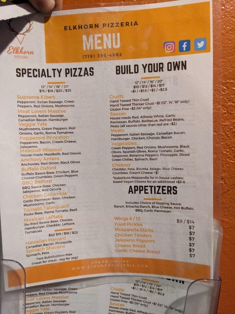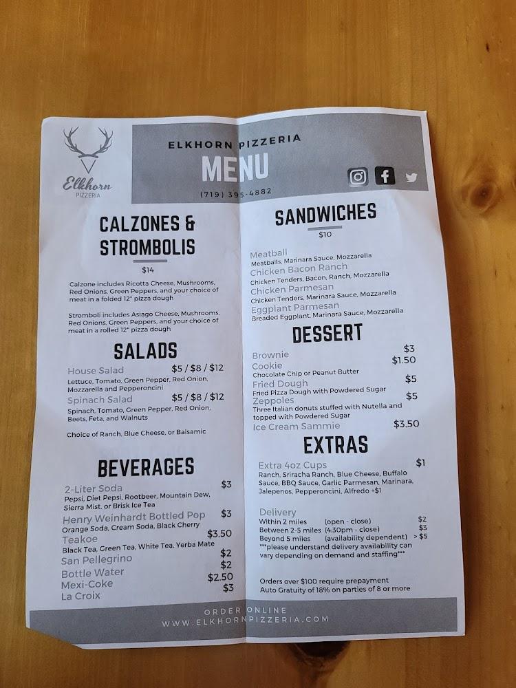 Welcome to Elkhorn Pizzeria, your go-to spot in Buena Vista, CO, for delicious, handcrafted pizzas that cater to every taste. Located at 601 US Hwy 24 N, we offer a warm and inviting atmosphere perfect for families and friends alike. Enjoy dine-in service, takeout, or contactless delivery from our extensive menu, featuring vegetarian options and late-night dining. With a full bar offering beer and wine, plus essential amenities like wheelchair access and free Wi-Fi, we strive to ensure a memorable experience for all. Join us for lunch, dinner, or dessert, and savor the local flavor of the Rockies!